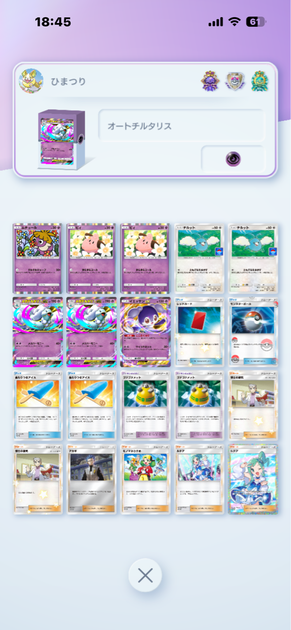 オートくんのルーチンとベイビィポケモンの並べる相性がよく、ベイビィを並べすぎてチルットを置けないパターンはほとんど見られなかった。