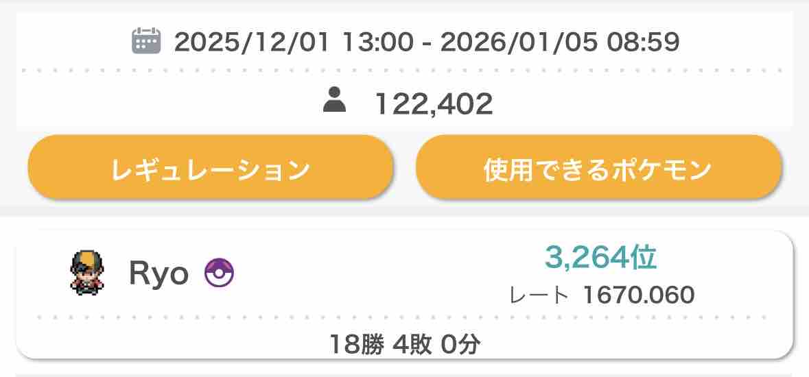 こだわり3体をとんぼ返りで回す、というコンセプトパーティだが、コライバドがトップメタすぎるのか、とにかくテラスと積みで対策してくる相手が多かった。