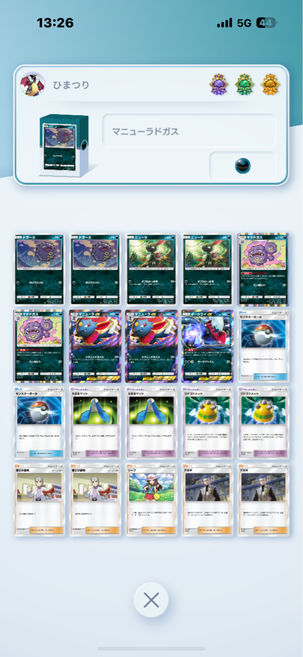 パーモットドロップイベントが開催されたので、こーれは格闘弱点だしイケそうだというので、パッと試して、とりあえずエキスパートには全く負けないデッキができたのでレシピ公開します。